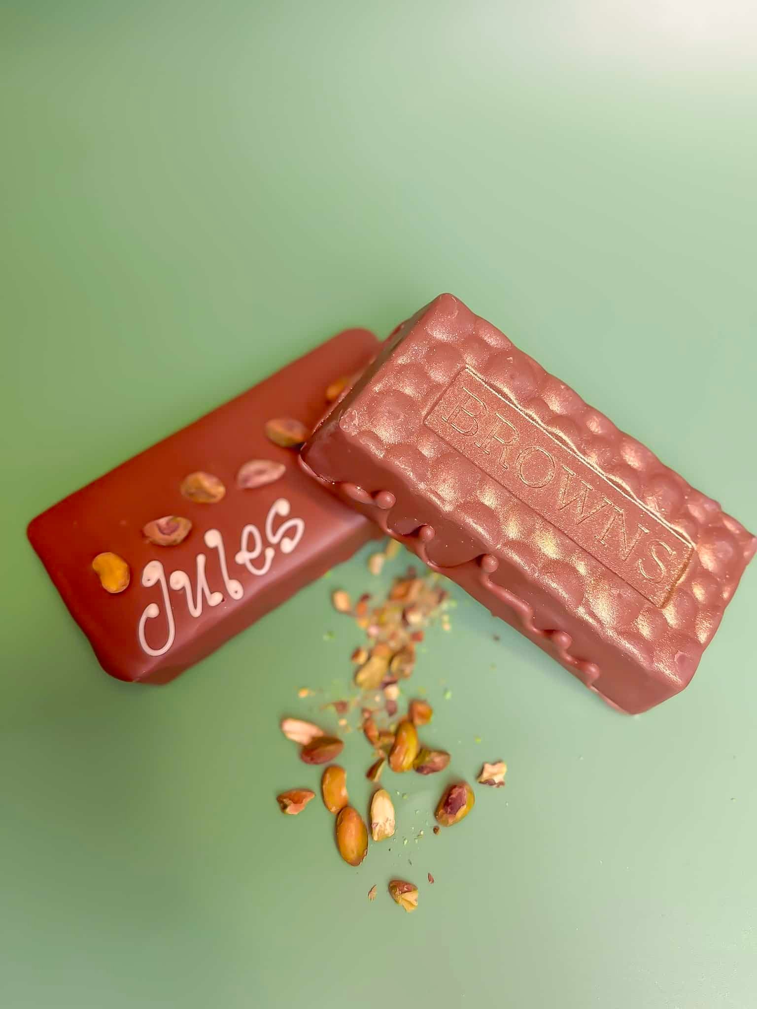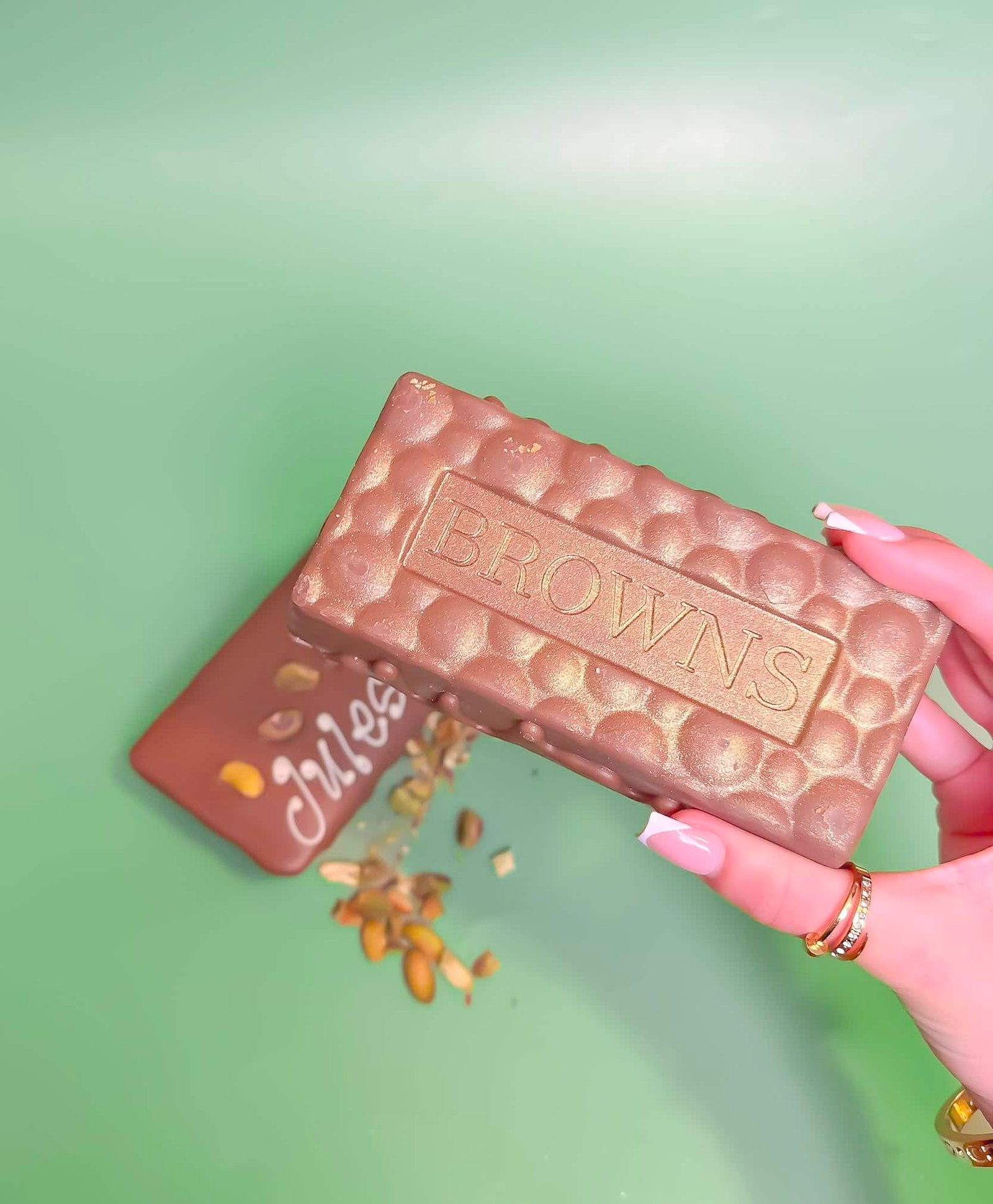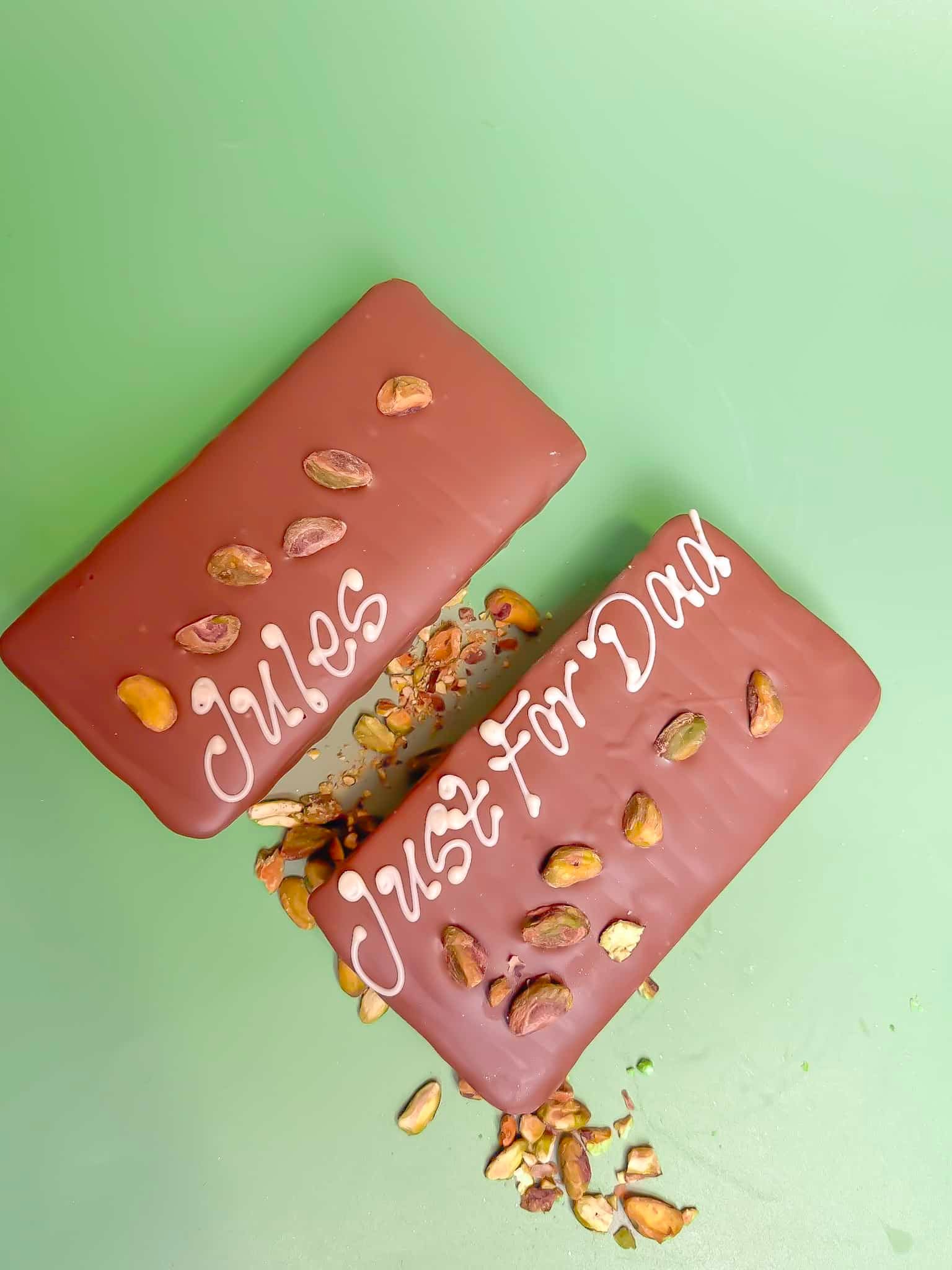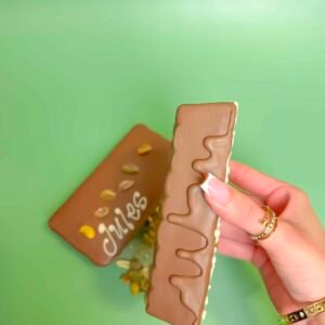 Our bestseller and a true customer favourite. The Pistachio & Kunafah Chocolate Bar is inspired by the famous Dubai-style chocolate, combining rich, nutty pistachio flavours with layers of crispy kunafah, all wrapped in smooth Belgian milk chocolate.