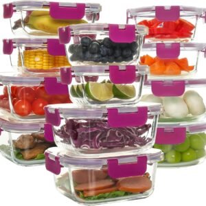 Recipientes de Cristal Para Alimentos – 24 Piezas (12 recipientes y 12 tapas) – Apto lavavajillas